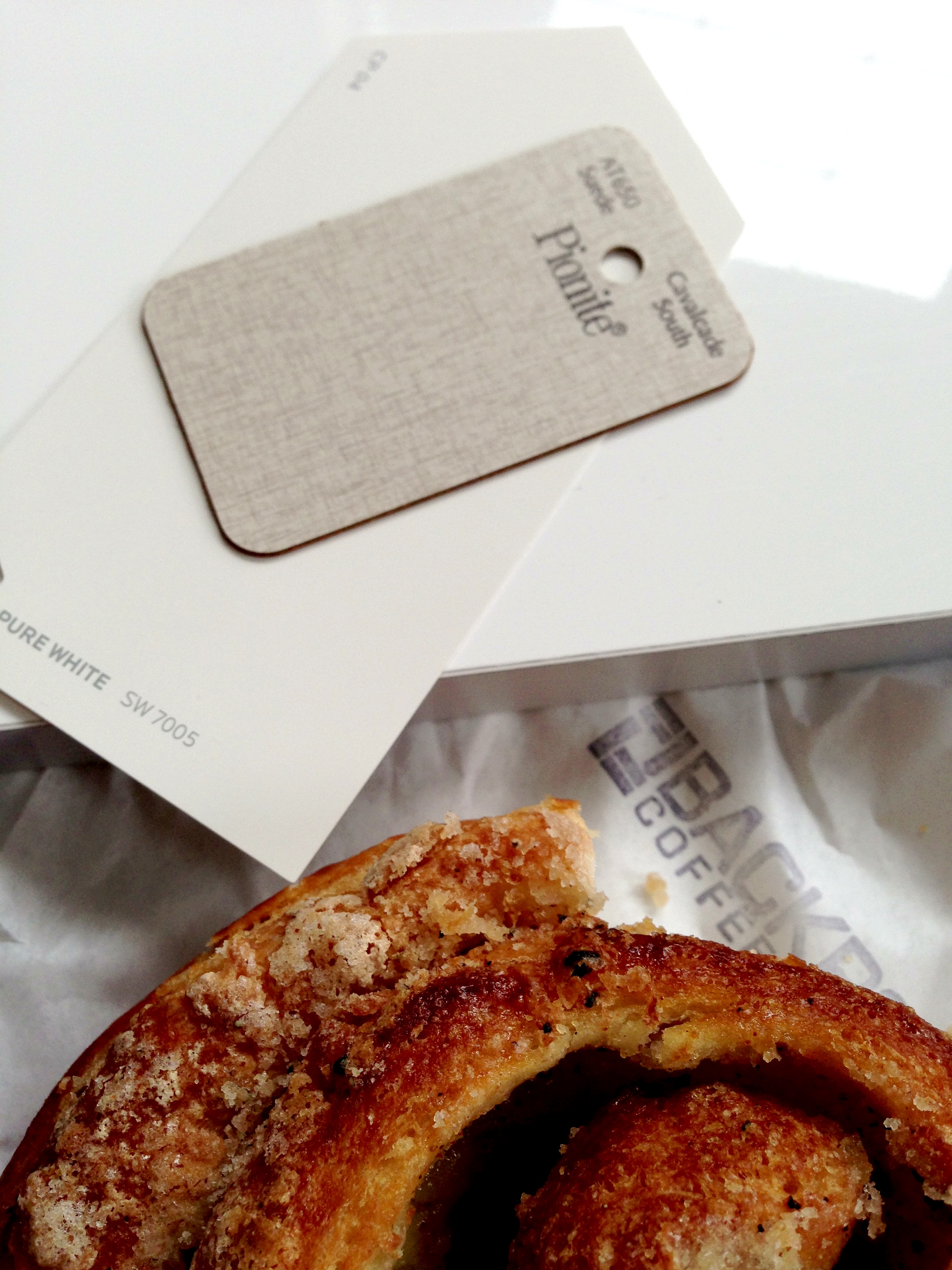 I have no clever metaphor to connect delicious, local baked goods with today’s decisive moment. But it was helpful to have something spicy-sweet in my maw while I gave the final nod on our kitchen swatches.