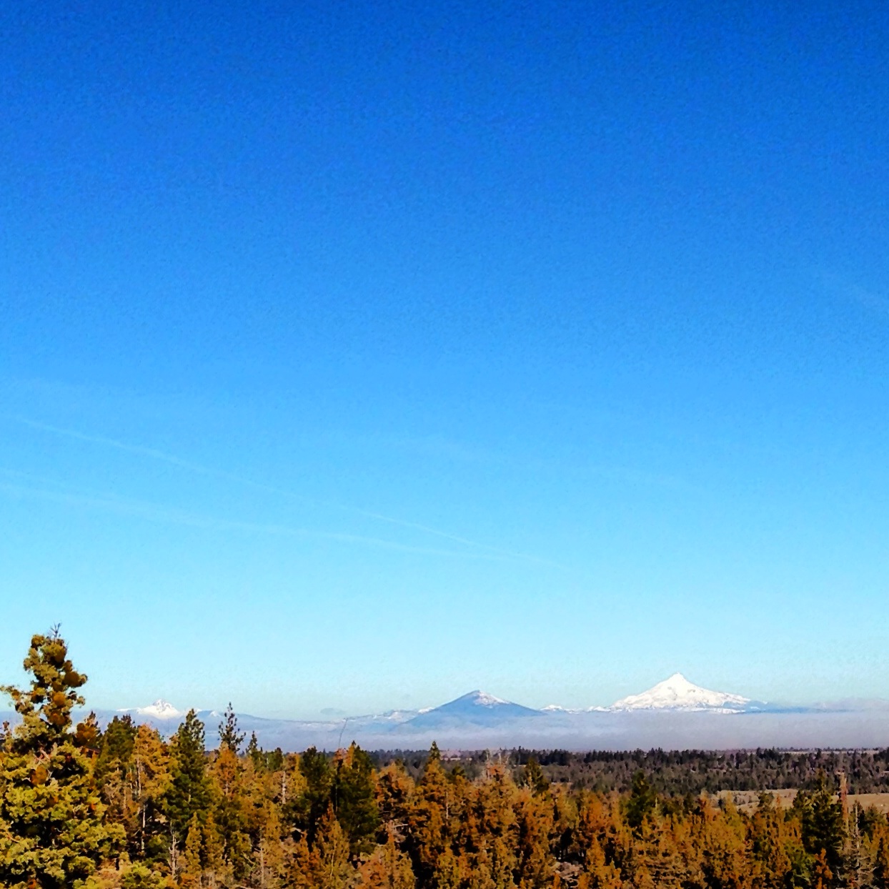 February 15, 8:58 a.m.: Glimpse of Black Butte and Mt. Jefferson