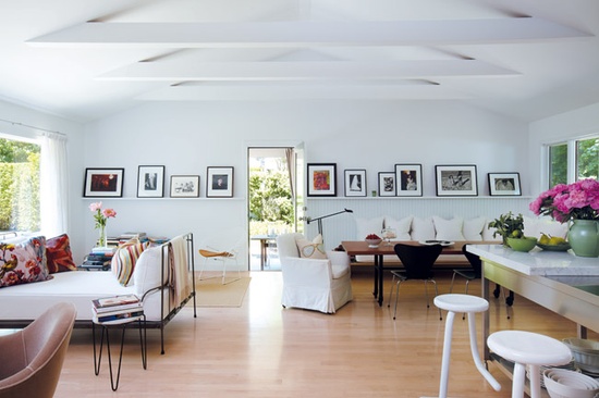 With the bright rooms, white walls, Moroccan rugs and reclaimed industrial work stools. Ombre this and Ikat that and repurposed mason jars and teapots with neon-dipped handles. I have a board called “rooms” that is filled with images like this: